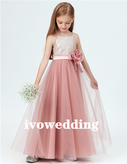 Flower Girl Dress,Tulle Flower Girl Dress Party Appliques Long Sleeve For Wedding Birthday Ball Gown First Holy Communion Prom Dresses