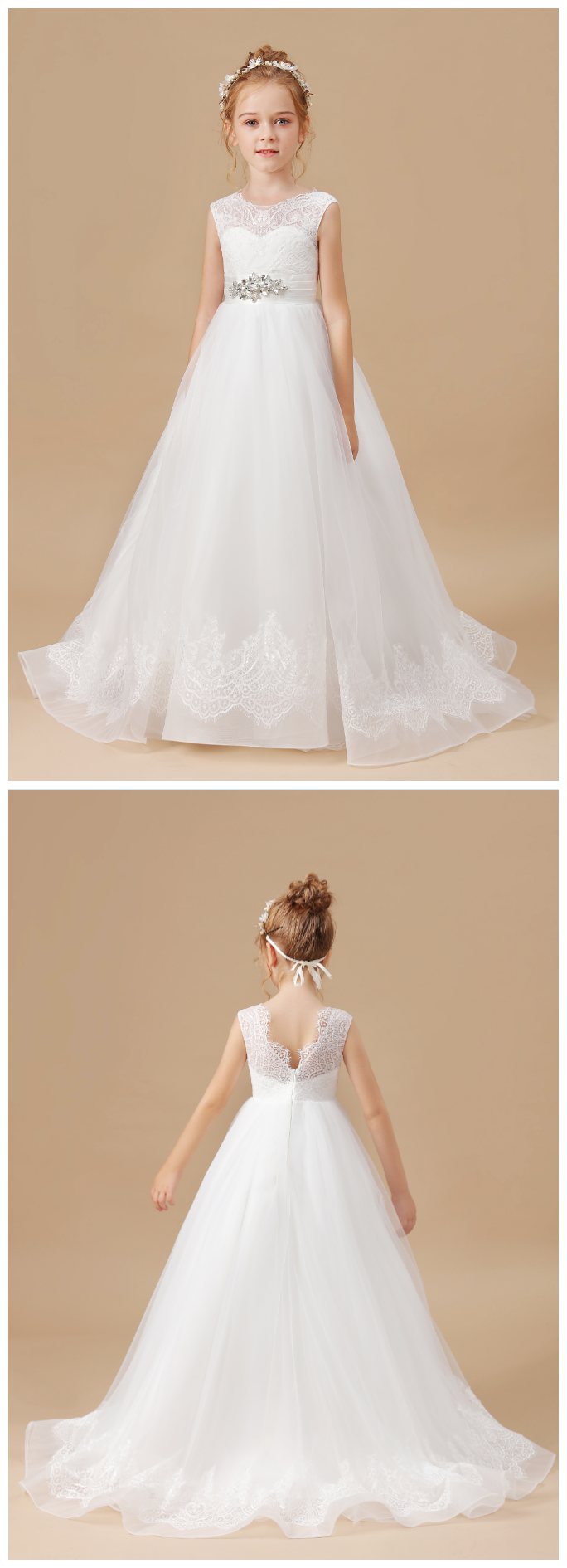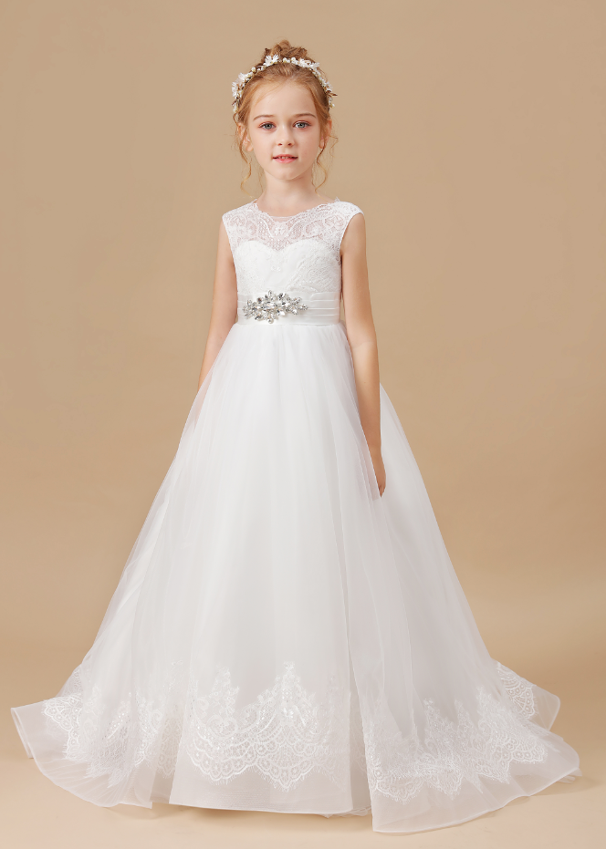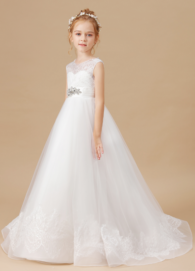 Flower Girl Dress, Mesh Princess Dress New Girls Dress Appliques Lace Sweet Children Party Suits Butterfly Costume Children Clothing
